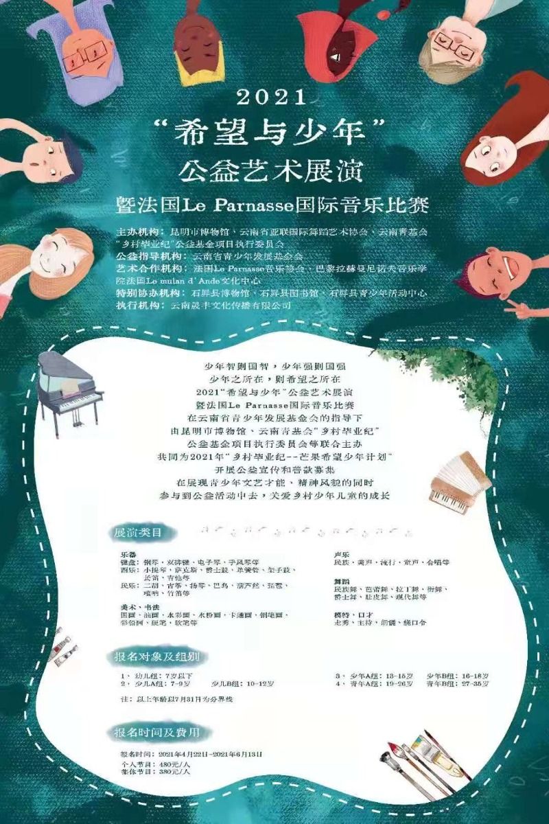 文旅头条讯(融媒体记者 马寅瑞 文)用歌声把我的童年唱给你听,用画笔描摹心中最美的风景。4月22日,2021“希望与少年”公益艺术展演暨法国Le Parnasse国际音乐比赛启动新闻发布会在昆明市博物馆举办。本次公益展演由云南青基会指导,昆明市博物馆、云南省亚联国际舞蹈艺术协会、云南青基会“乡村毕业纪”公益基金项目执行委员会主办,法国LE MOULIN D'ANDE昂黛文化协会,法国LE PARNASSE帕纳斯音乐协会,巴黎RACHMANINOFF音乐学院为艺术合作结构。