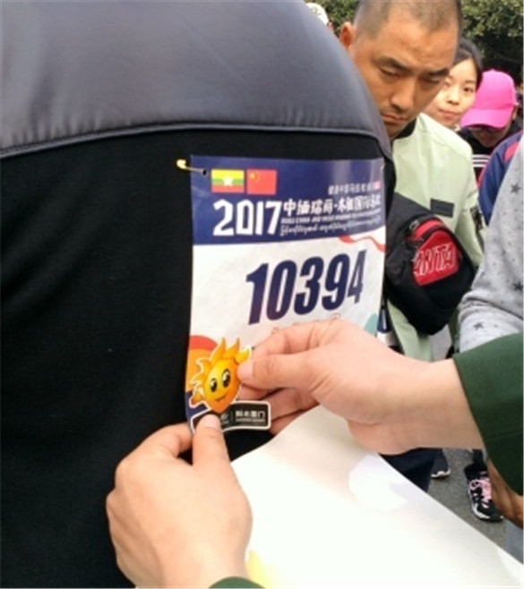 跑步出国将会是怎样一种体验?在缅甸段进行试跑时,运动员们提前感受到了出境跑的魅力。从姐告出入境通道出境,进入到缅甸赛段,中国瑞丽边防检查站的官兵今天一早就开始对试跑员进行出境检录。检验完毕后,在号码布上标注暖暖的小太阳,运动员们排练成整齐的队伍等待出境。