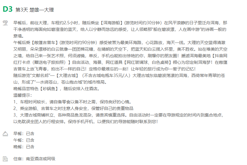 2021年6月3日,云南省文化和旅游厅综合执法监督局联合云南就爱去旅游文化传媒文旅大数据“游舆系统”监测到:广州往返 云南石林、大理 洱海、玉龙雪山、大理古城双飞六天五晚跟团游694元/人