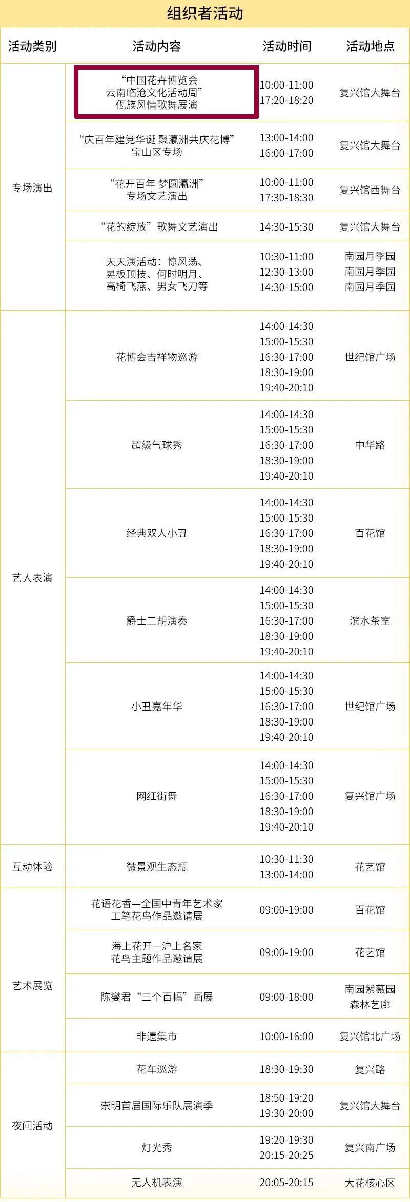 6月12日至17日,每天上午10:00-11:00,下午17:20-18:20,阿佤姑娘和小伙与您相约在上海崇明花博园复兴馆大舞台!快来感受大美临沧、秘境沧源的魅力吧!