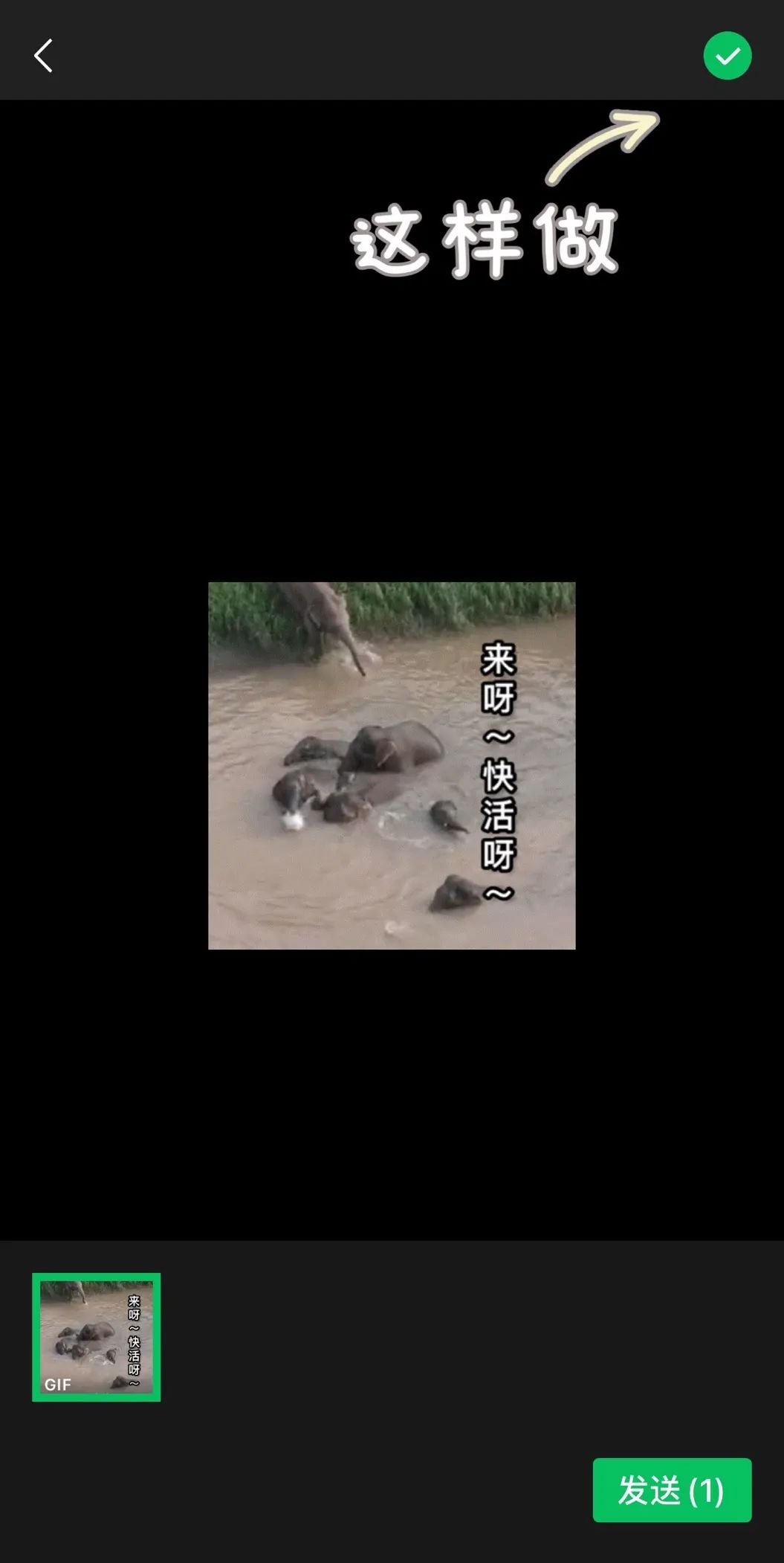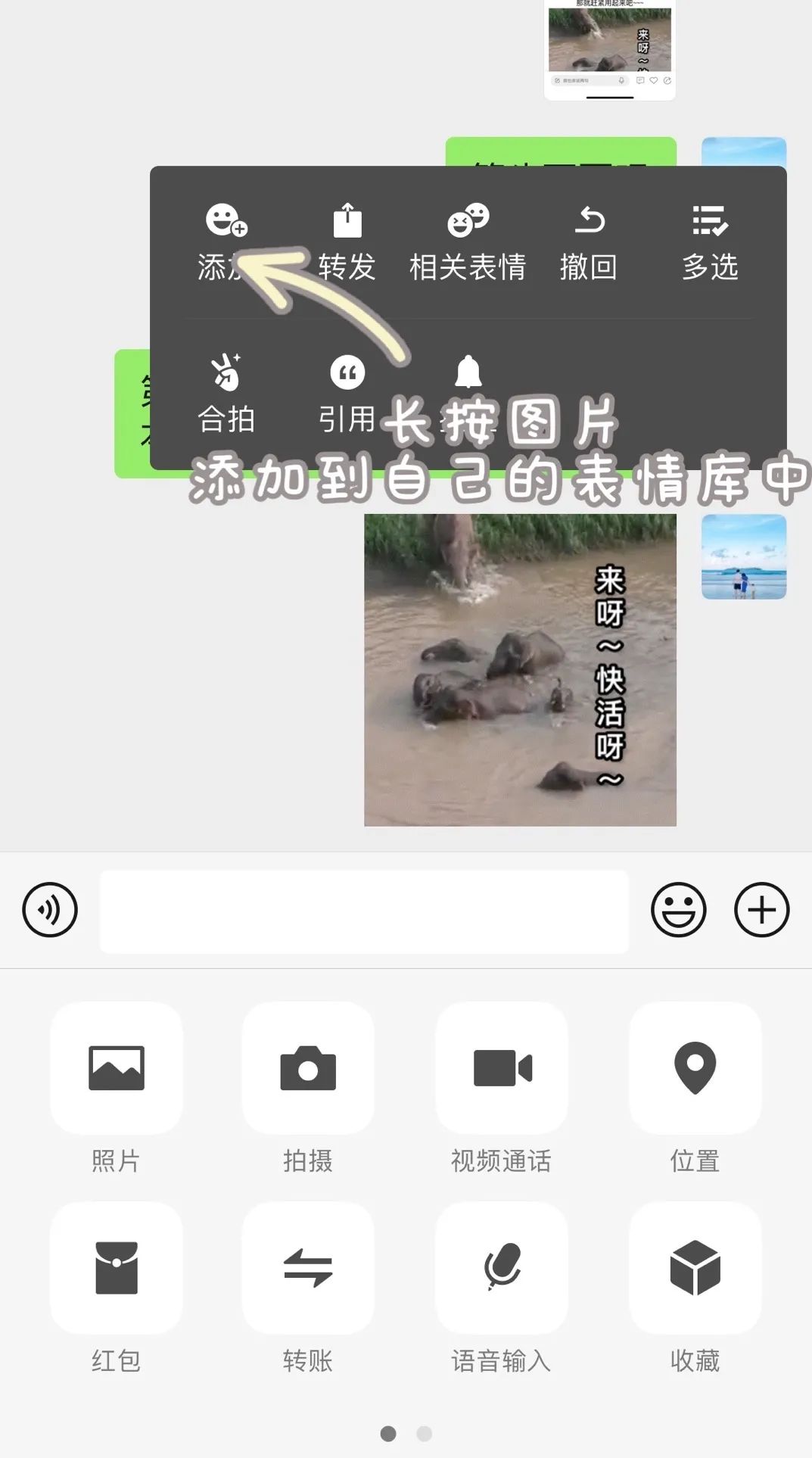 第二步:与朋友们聊天时,从本地相册选择自己想用的表情包发送动图。