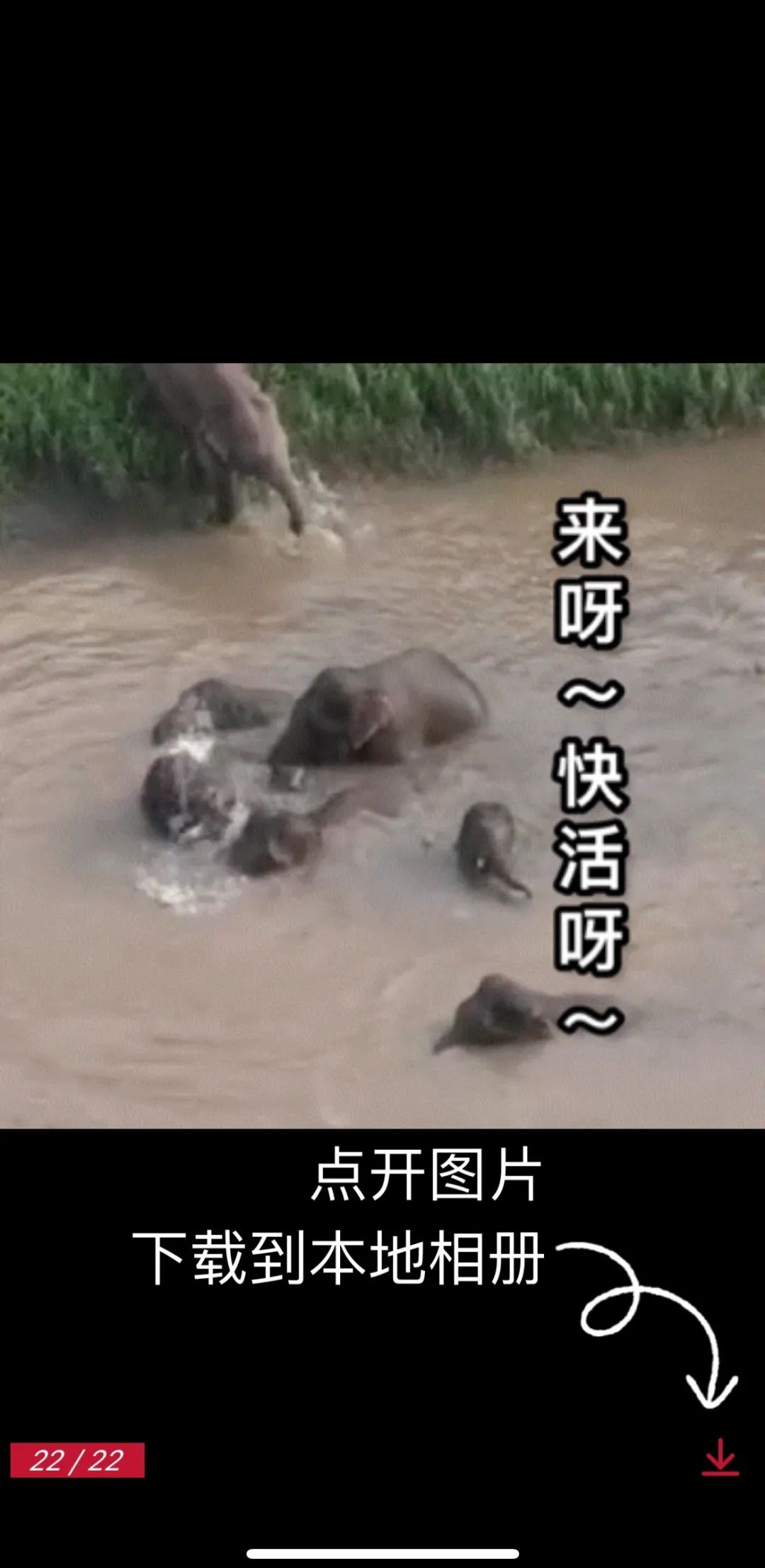 第一步:在文章中点开图片后, 点击箭头下载到本地相册。