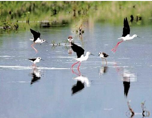 规划区共记录到鸟类127种,隶属于14目35科。其中包括湿地鸟类(水禽)67种,占所有鸟类种数的52.8%;列入国际自然保护联盟(IUCN)濒危物种红色名录(近危级别以上)中的鸟类1种,为青头潜鸭;列入《国家重点保护野生动物名录》中的物种7种。另有中国新分布种1种,为钳嘴鹳。