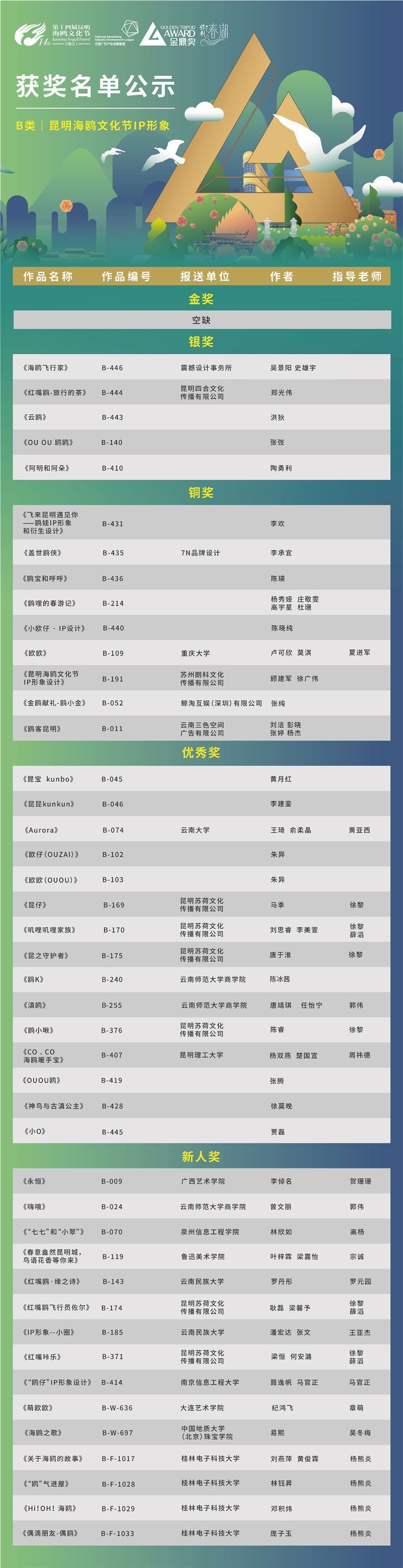 据了解,本次大赛由昆明市五华区委、昆明市五华区政府主办。大赛组委会于5月22日、6月19日邀请了国际、国内资深创意人、专家学者共31人分别担任评委进行初审和终审。评委按照公平、公正、公开的原则,对各单元进行了独立评审,通过打分、合议、表决等方式,最终评选出了本次大赛各单元各类奖项,现将获奖名单予以公示,接受社会监督。