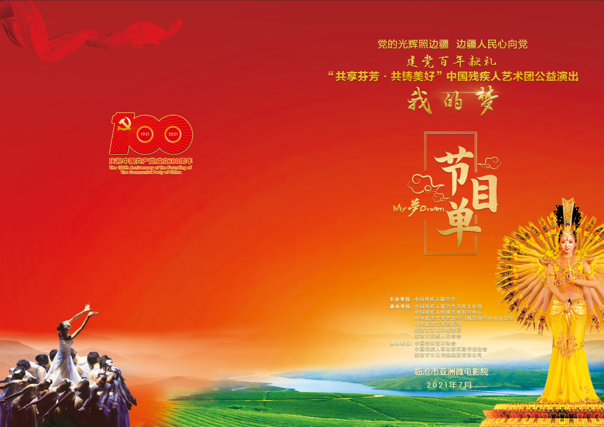 为热烈庆祝中国共产党成立100周年,中国残疾人艺术团将于7月3日、7月4日在临沧亚洲微电影院开展两场公益演出活动。此次活动,由中国残疾人联合会主办,中国残疾人联合会宣传文化部、中国残疾人特殊艺术指导中心、中共临沧市委党史学习教育领导小组办公室、中共临沧市委宣传部、临沧市文化和旅游局、临沧市残疾人联合会承办,中国特殊艺术协会、中国残疾人事业新闻宣传促进会、临沧市文化传媒集团有限公司协办。