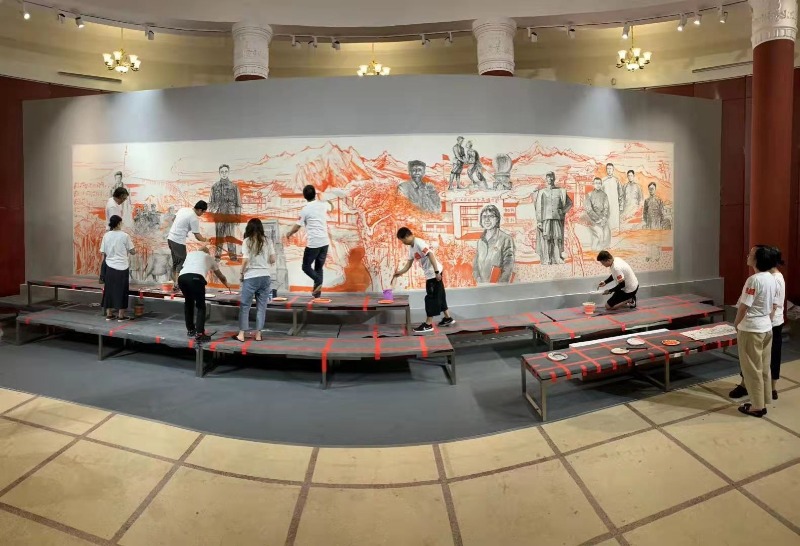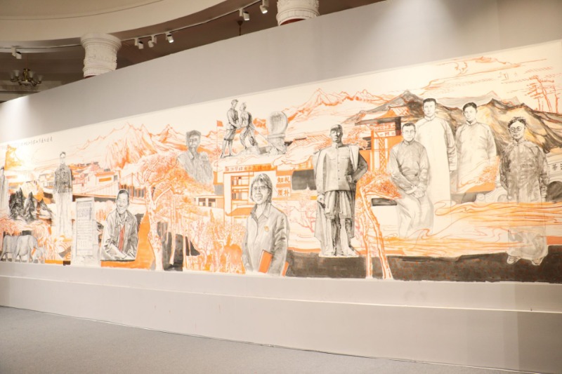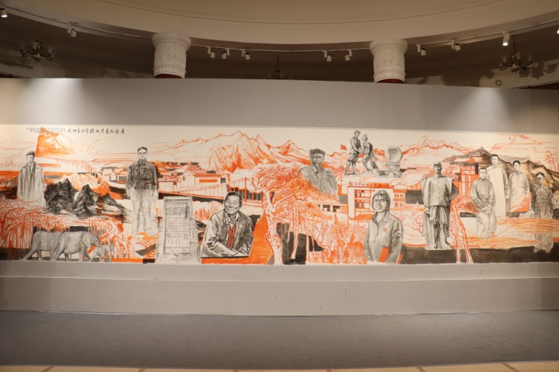 罗江介绍,本次展览中最具代表性的是主展厅的“走进大美滇西 探寻红色印迹”巨幅画作,此画高3米,长11米,由近十余位艺术家共同参与完成。