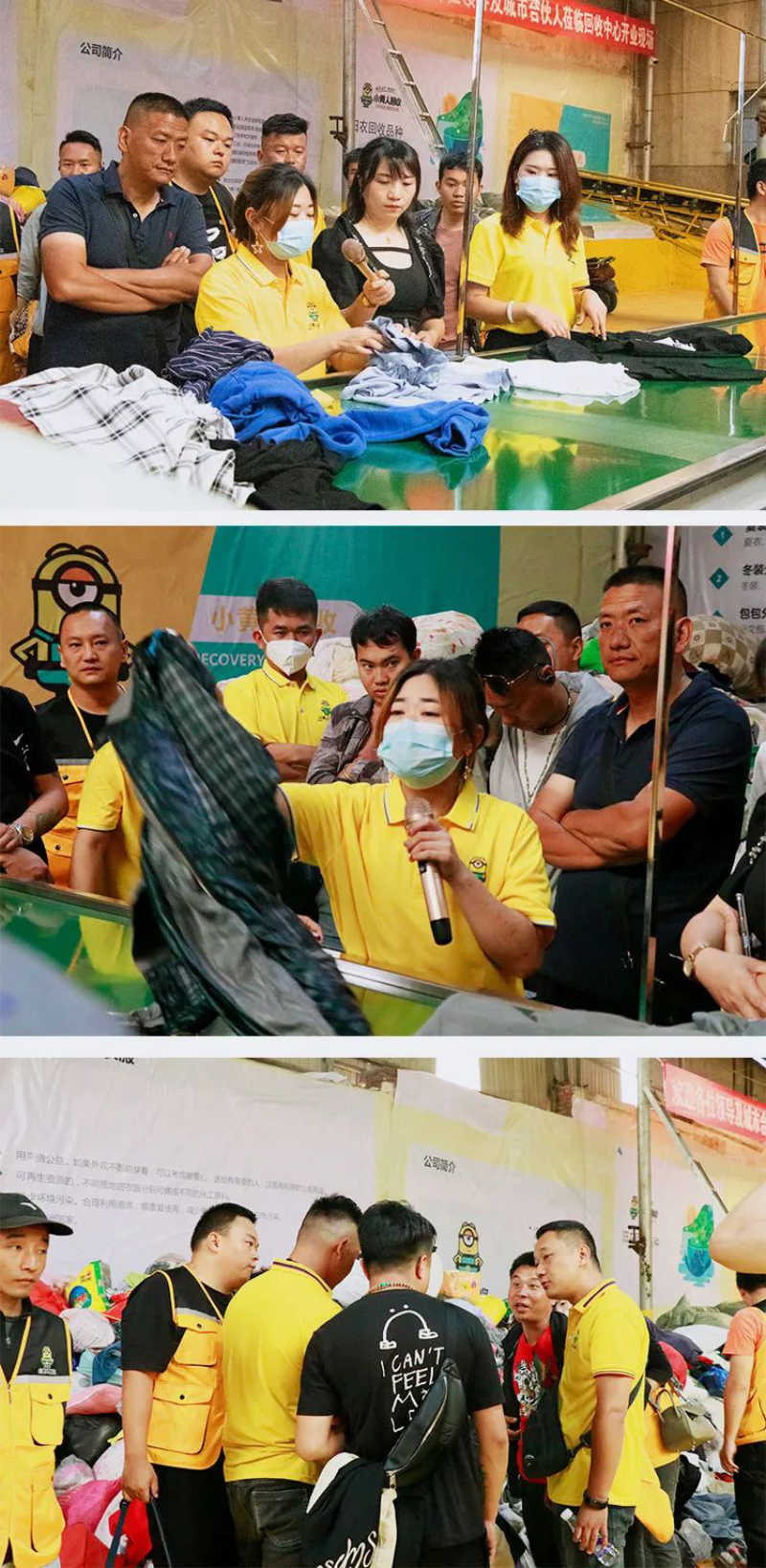 随后,张旭邀请嘉宾们上台参加剪彩仪式,在全场嘉宾的见证下,小黄人分拣中心正式开业。开业仪式后,分拣中心运营经理张婷带领全场嘉宾参观分拣中心,并对分拣中心功能划分、旧衣服回收标准、分类等做了细致讲解。