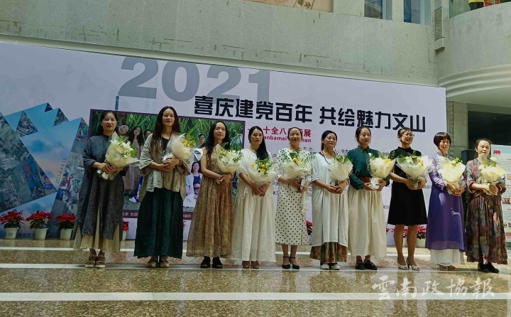 据了解,这是在文山州文联、州美协和各级各部门的关心支持下,欣逢中国共产党成立100周年、文山建州64周年之际,“十全八美”女性艺术团体成员以 “魅力文山”为主线创作的一系列绘画艺术作品,为党的百年华诞献上的一份厚礼。