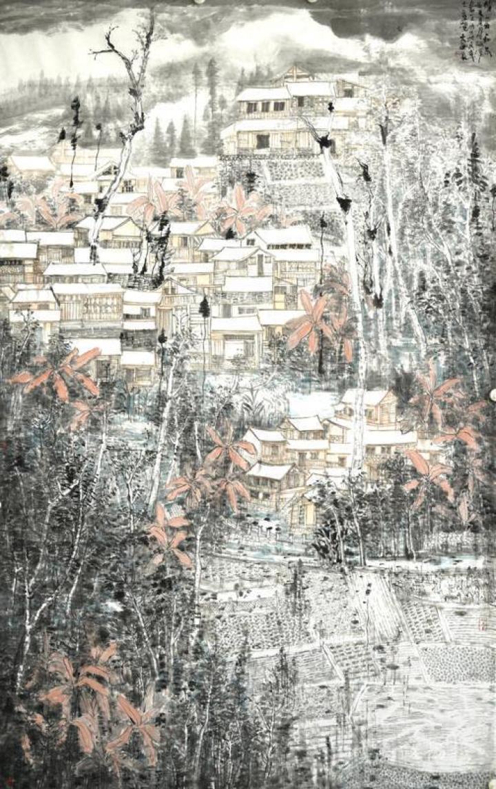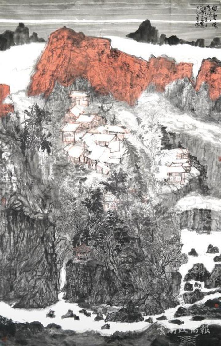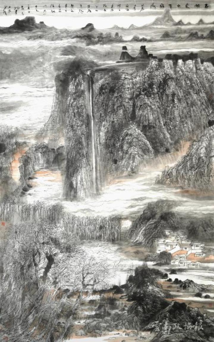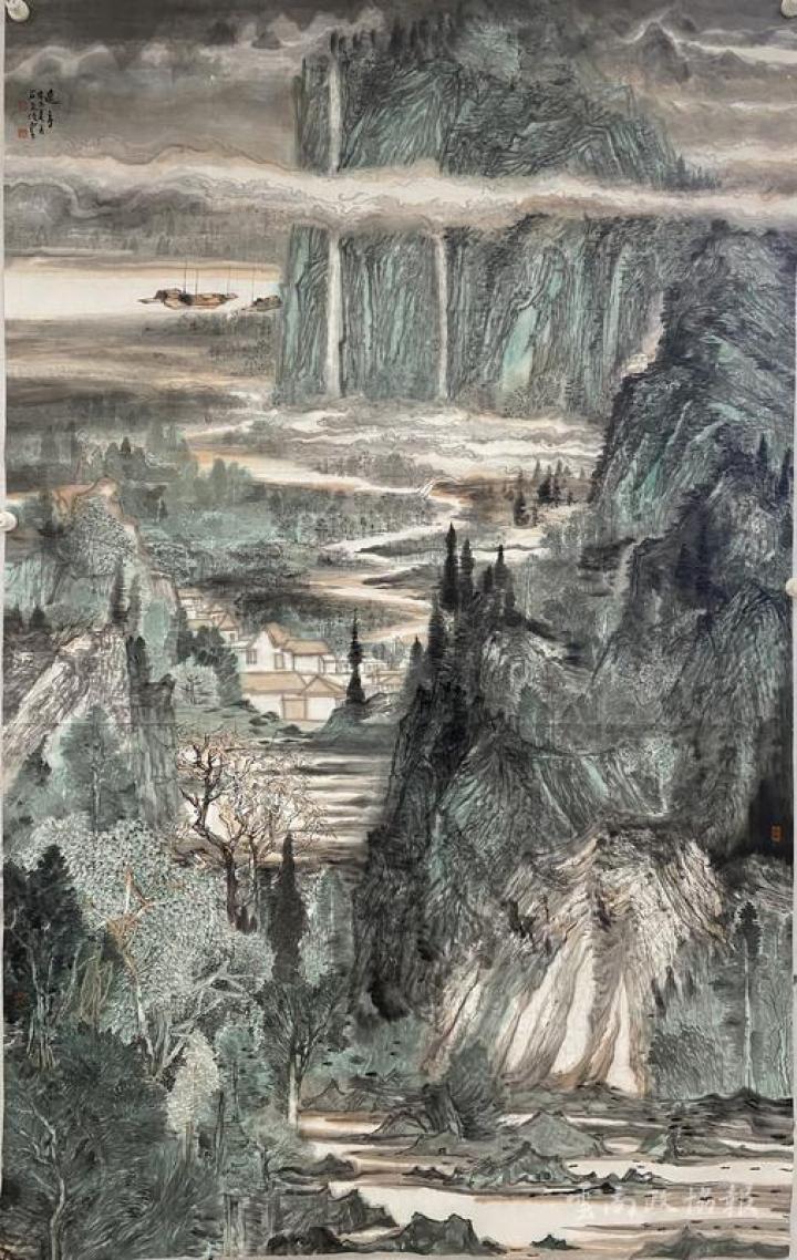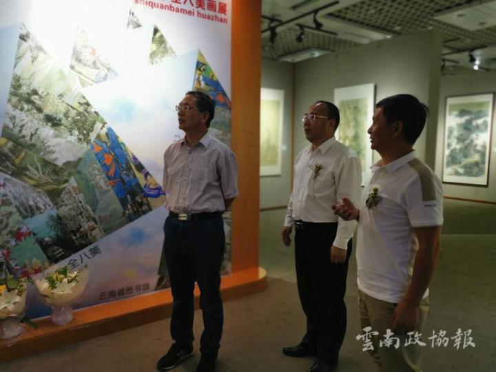 8月4日,位于翠湖畔的云南省图书馆二楼展厅,《梦聆云水》《古寨袭雨风半楼》《晴雨秋思》《雨润家山梦归乡》《远方》《有云飘过我家门前》等风格各异的丹青佳作展示了各民族团结一心、脱贫致富奔小康、建设美丽家园的精神风貌;中国画、油画、现代重彩画等绘画语言,更多集中于花卉和风景题材,也有人物(特别是文山地区少数民族)的表现。一系列手笔不凡的作品大气磅礴、美轮美奂,令人目不暇给。