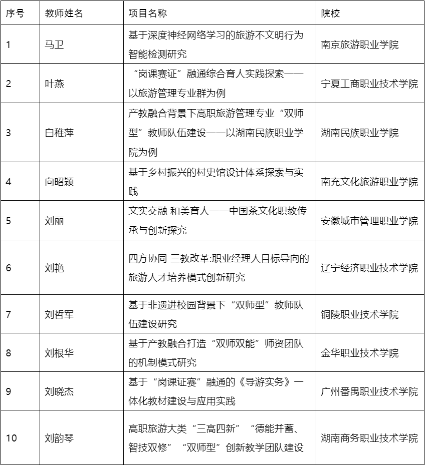 近日,文化和旅游部办公厅印发通知,公布2021年度文化艺术职业教育和旅游职业教育提质培优行动计划入选项目名单。