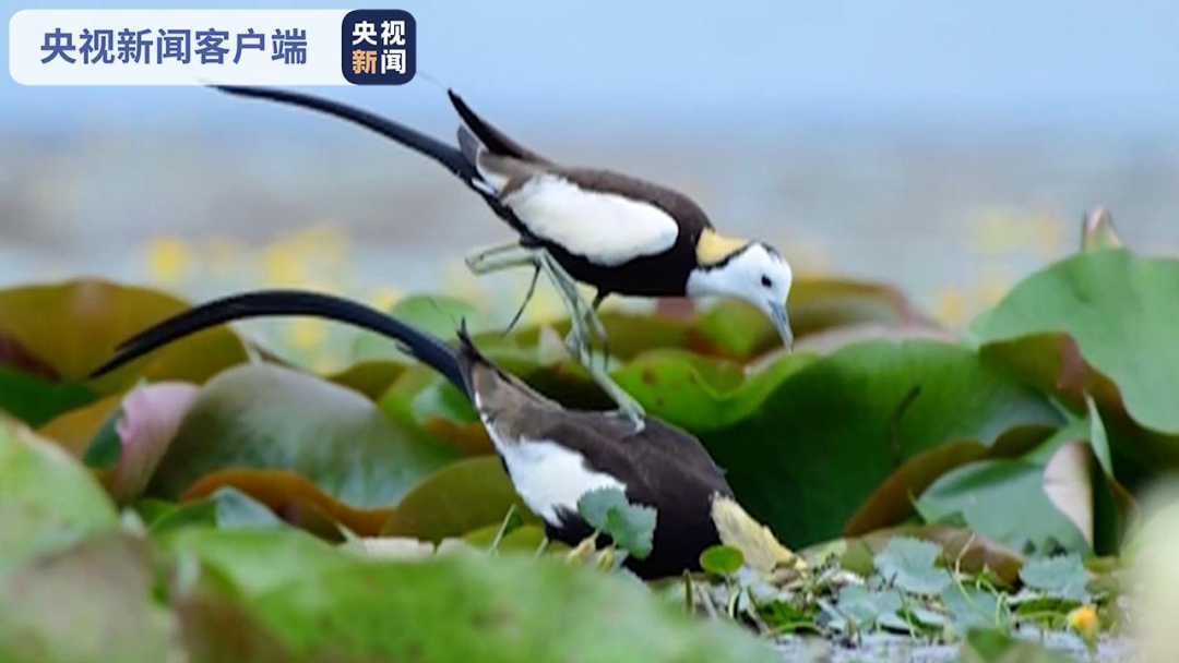 专家介绍,水雉属国家二级重点保护野生动物,能轻步行走于睡莲、菱角、荇菜等浮叶植物上,且体态优美,所以被誉为“凌波仙子”。每年4月至9月,实行一雌多雄制的水雉进入繁殖季,雄鸟常为争夺配偶而打架。雌鸟只负责产卵,孵卵和育雏则由雄鸟承担,在一个繁殖季一只雌水雉可最多与10只以上雄水雉交配,产完卵后就交给雄水雉孵化,水雉雏鸟出生后半小时左右即可行走觅食。