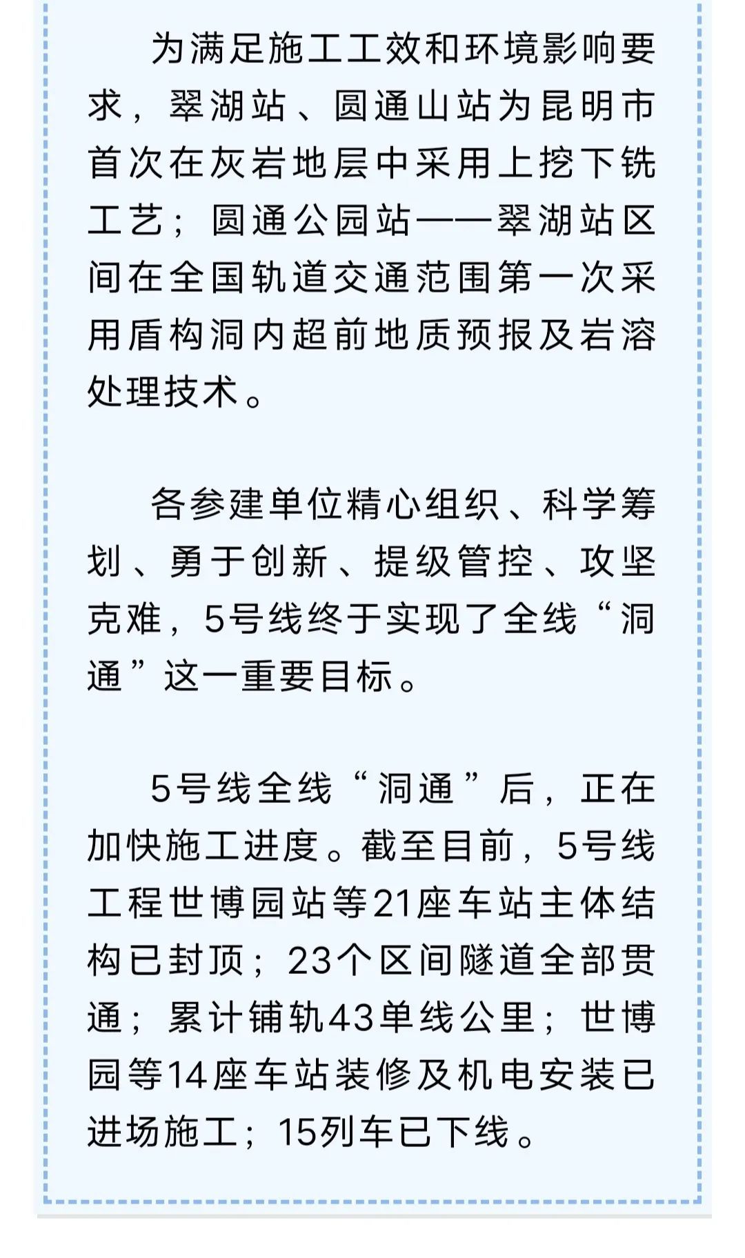“洞通”“轨通”“电通”是地铁建设中重要的标志性、里程碑节点。“洞通”后,将随即开展区间联络通道施工,然后进入轨道铺设阶段,“轨通”后全面转入机电系统安装,特别是供电系统设备安装调试完成送电,实现“电通”后,才能为各专业的系统调试提供电力保障。