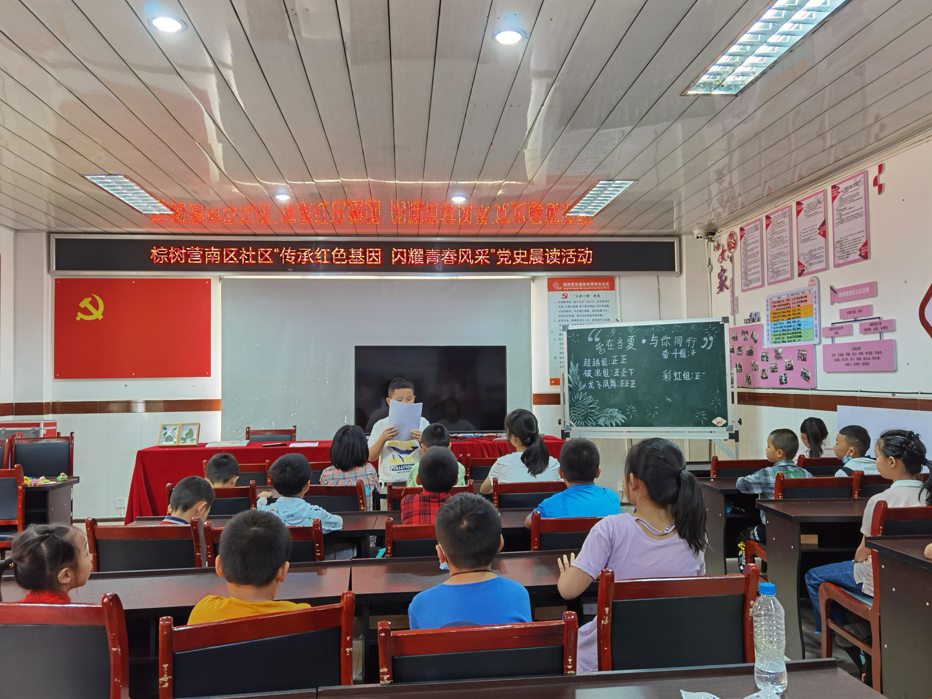 一日之计在于晨,棕树营南区社区儿童之家通过每日“党史晨读半小时”活动,带领青少年阅读党史红色故事、爱国诗词、经典读本等,小朋友们特别喜欢“小英雄”的故事,钦佩于他们临危不惧、有勇有谋、敢于献身的精神。在晨读的潜移默化中,党史知识学习从“灌输式”变为“互动式”“沉浸式”,进一步激发青少年爱国爱党情怀。
