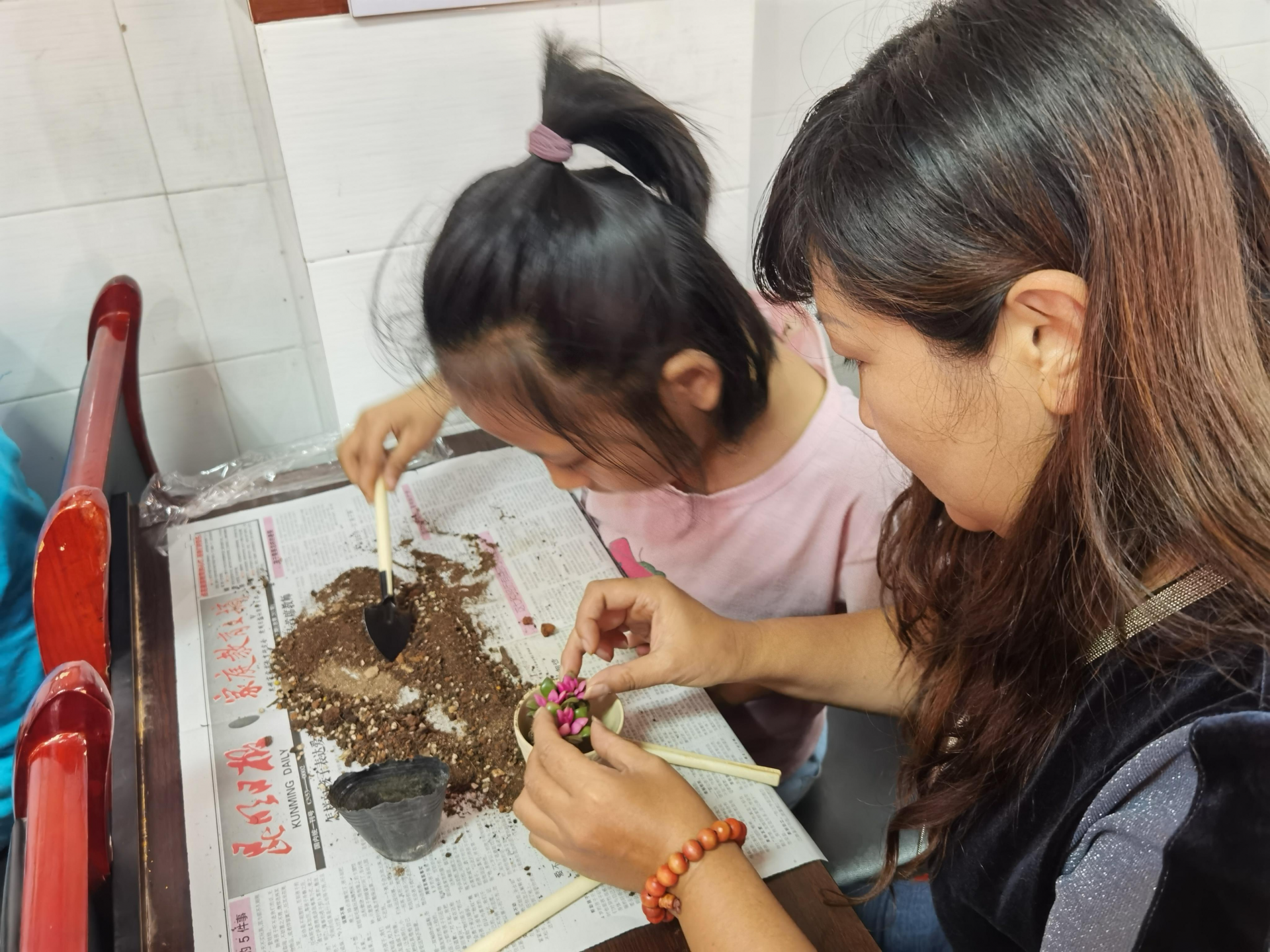 劳动是中华民族的优良传统美德,社区在“儿童之家”夏令营中开展丰富的手工制作活动。学习剪纸艺术,传承民俗文化;自制美味的雪花酥,把甜甜的爱带回家;收集落叶、花朵,制作成“绿色相框”,用绿意点缀生活,树立绿色环保的理念。正值七夕佳节,社区还邀请家长朋友们参与节日活动,以家庭为单位,与孩子们共同培育“家庭树”,把多肉种植种在小花盆中,精心地做造型,小朋友们还亲切地为它们取名字,把小植物们当做家庭中的一员,现场老师引导小朋友们要为地球生态文明的延续做出努力。