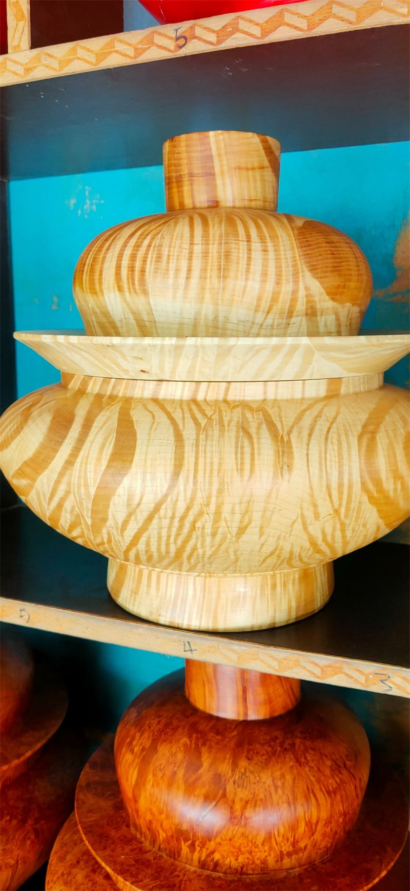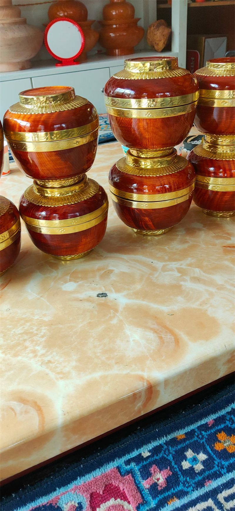 木碗可分为大碗、小碗、盖碗、套碗、木钵等,用途广泛,盛酥油茶、糌粑、香料、作料等,而且还具有光滑、细致、美观、适用、不变味、喝茶香、携带方便等特点。