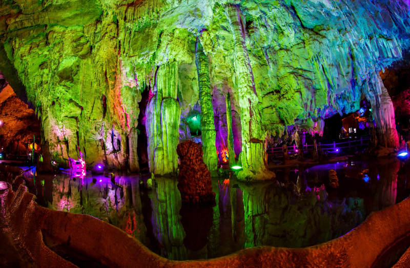 溶洞内,神田、瀑布、倒石林、神女宫……钟乳石在这里构筑了一个奇幻的世界,让人大开眼界。
