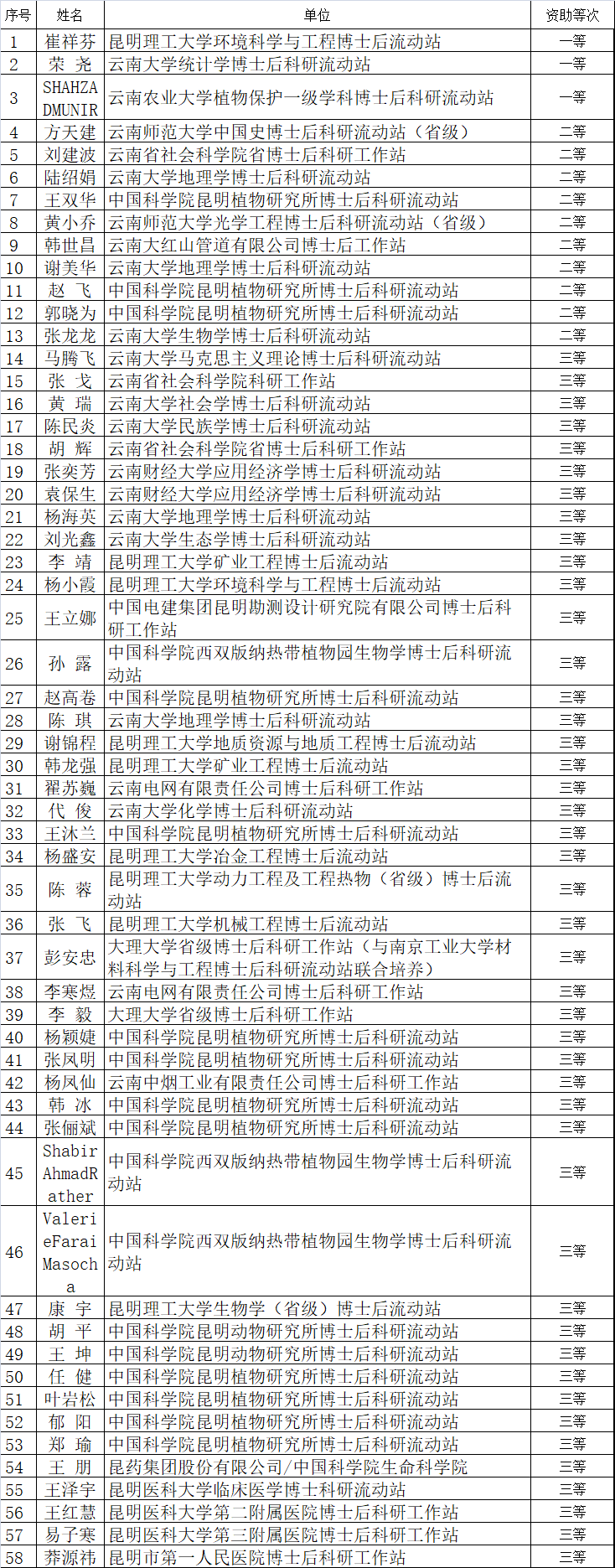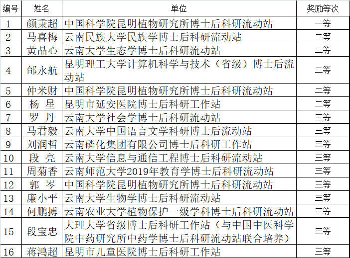 拟获云南省2021年博士后定向培养资助