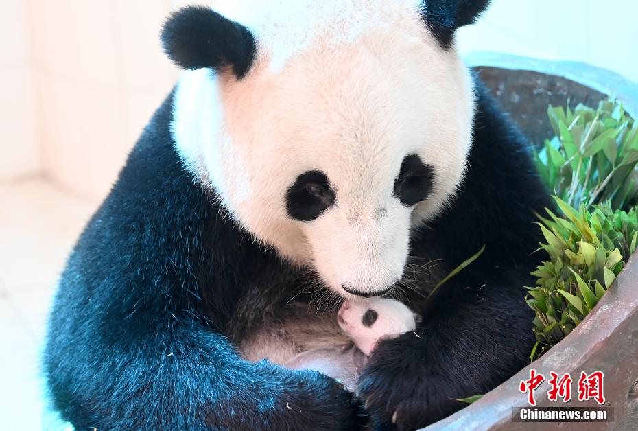 (9月3日大熊猫“宝宝”和它的新生幼仔在一起。安源 摄)