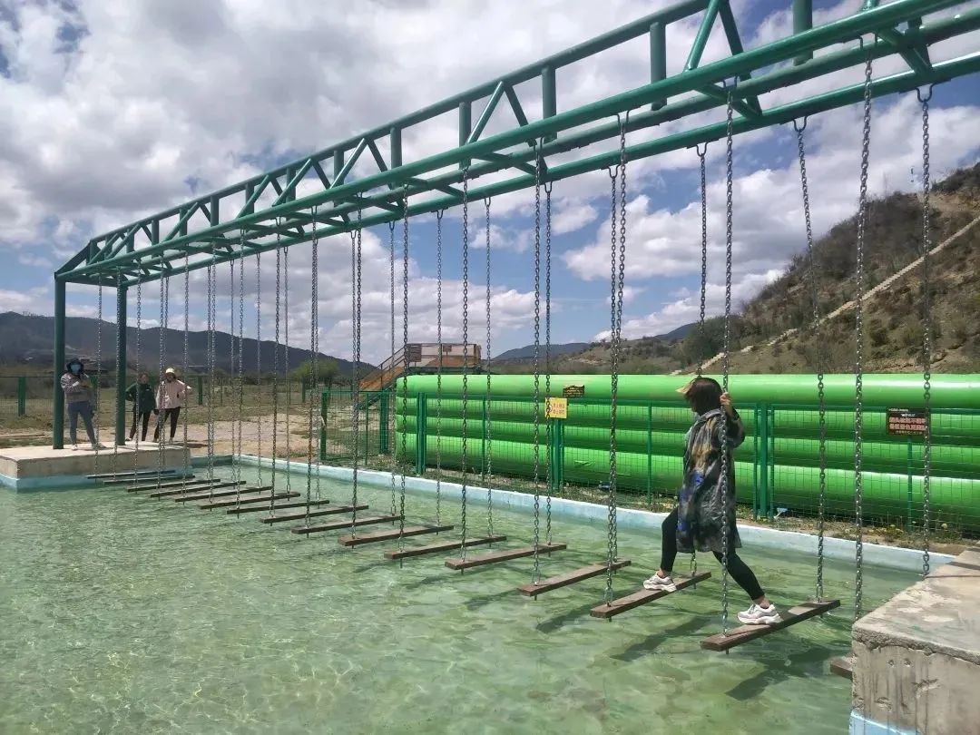 手脚配合,不断变换身体姿势,抵达对岸。能锻炼身体协调能力,加强手臂力量。