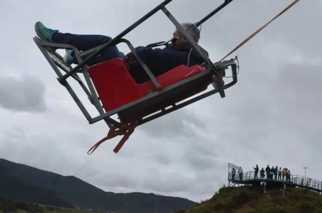 玩的是胆量、玩的是心跳!长长的秋千瞬间向外荡去,带给人以刺激的感觉!