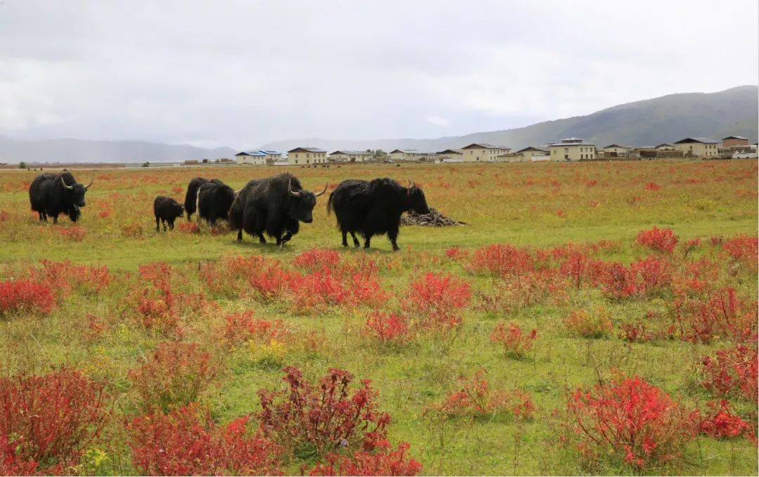金秋十月,繁盛的狼毒逐渐褪去了苍翠的光泽,在不知不觉中换上深红的礼服。