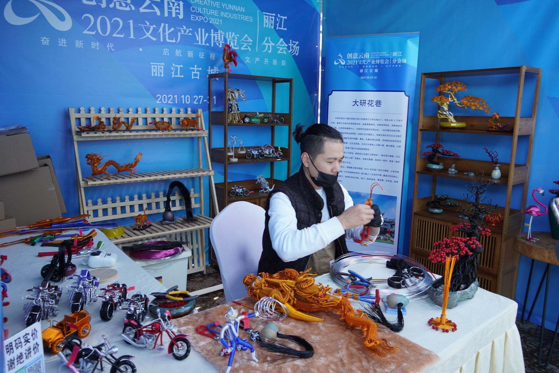 文旅头条讯(融媒体记者 李亚 文/图/视频)10月27日,为期5天的创意云南2021文化产业博览会丽江古城分会场在玉河广场开幕,这也是丽江古城第四次作为分会场办展。本次文博会以“奋进新时代 启航新征程 文创开新局”为主题,是疫情防控常态化形势下,线下线上互动结合的重要展会。