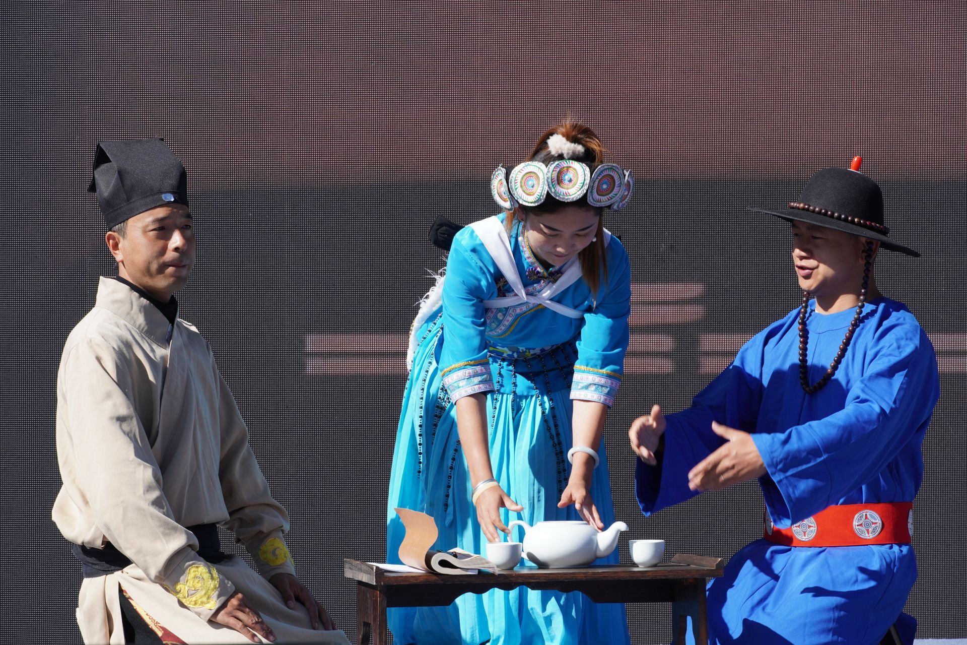 除了丰富的文创产品外,开幕式上的展演活动也是一大看点。以木府历史为原型的《木府风云三百年》舞台剧带人们穿越木府的前世今生;少数民族歌舞和国风表演里尽情绽放着民族文化自信……一个接一个的节目精彩亮相,献上了一场散发着文化魅力的视听盛宴。在接下来的几天中,这些节目也将在玉河广场继续上演,每天14:30都可准时来现场观看。