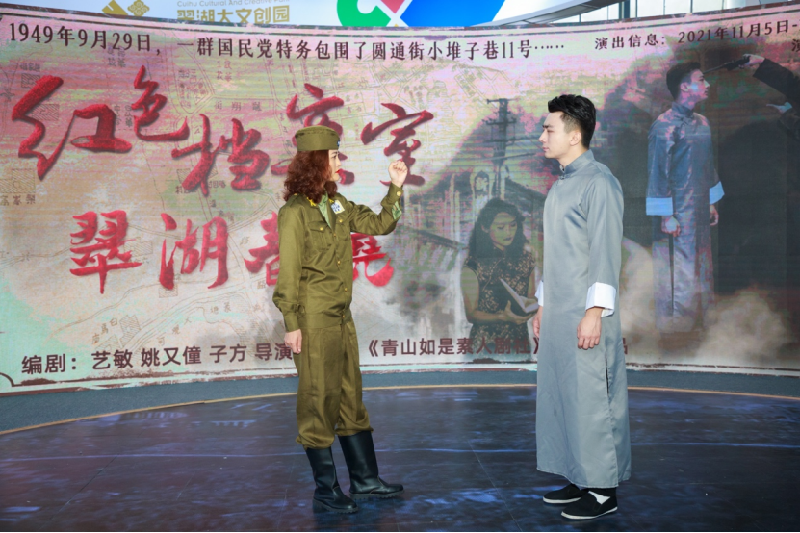 文旅头条讯(融媒体记者 何雨珍 文)10月29日,创意云南2021文化产业博览会落下帷幕,在6号展厅昆明馆,五华区以“翠湖大文创园”为主题,除展出五华新文创、COP15文创宣传品、金鼎奖文创、COP15云南特色文创等一系列文创产品外,五华区文化和旅游局联合青山如是素人剧社在现场上演了一出沉浸式环境戏剧——《红色档案室之翠湖春晓》。