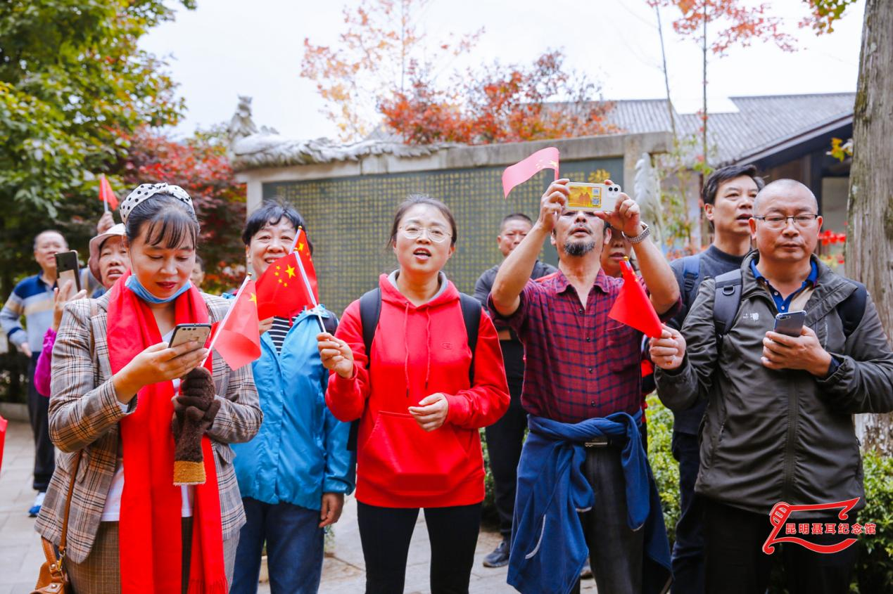 在西山聂耳墓活动现场,当熟悉的旋律、动听的声音响起,不少游客纷纷驻足观看,甚至自发加入到队伍中跟着歌唱《唱支山歌给党听》,或用手机记录下这动人的画面,演员们声音整齐、歌声洪亮,用满腔的热情表达着对祖国和党的热爱的同时并赢得了在场游客热烈的掌声,现场喜庆的氛围使得在场的每一个人心中自豪感倍增。