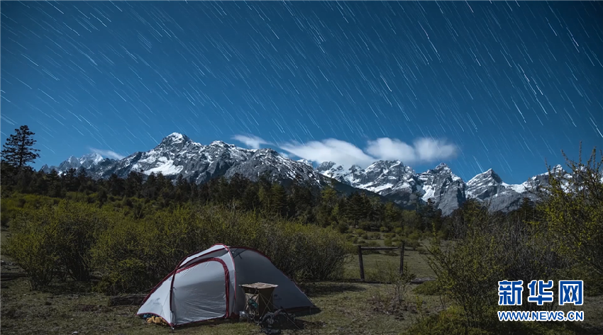 玉龙雪山星轨。新华网 陈斌 摄