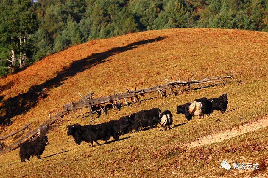 三是到天子山享受自然的宁静,发一回呆。云龙县检槽乡与苗尾乡相交的地方有个叫天子山的地方,是一块高山草甸,其最高的山顶海拔有3300多.草甸有上千亩,周边有着较好的森林植被,云雾缭绕,森林茂密,溪水潺潺,有牛羊满山坡的壮观,整个草甸周围有着上万只牲畜在觅食,有山羊、绵羊、马、猪、黄牛、牦牛,如果到下午全归巢时,整个草甸那才叫热闹那里似如天堂,是休闲养生的好地方,正是我们游走山野的好时节,特别是那里的山谷里还没有被移动信号覆盖,你可以在那里回到从前,体验无喧嚣的生活,静静的感受微风的轻拂,听鸟儿和鸣,品落叶的诗情,赏红叶的画意,也可以醉卧在草坪上,以地为席,以天为被,看白云飘过,思人生过往,谋未来之事,待到离开时,定不悔来此地。