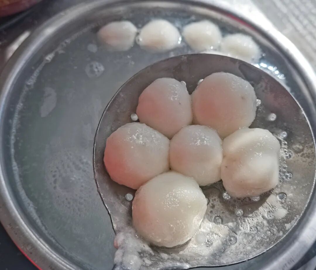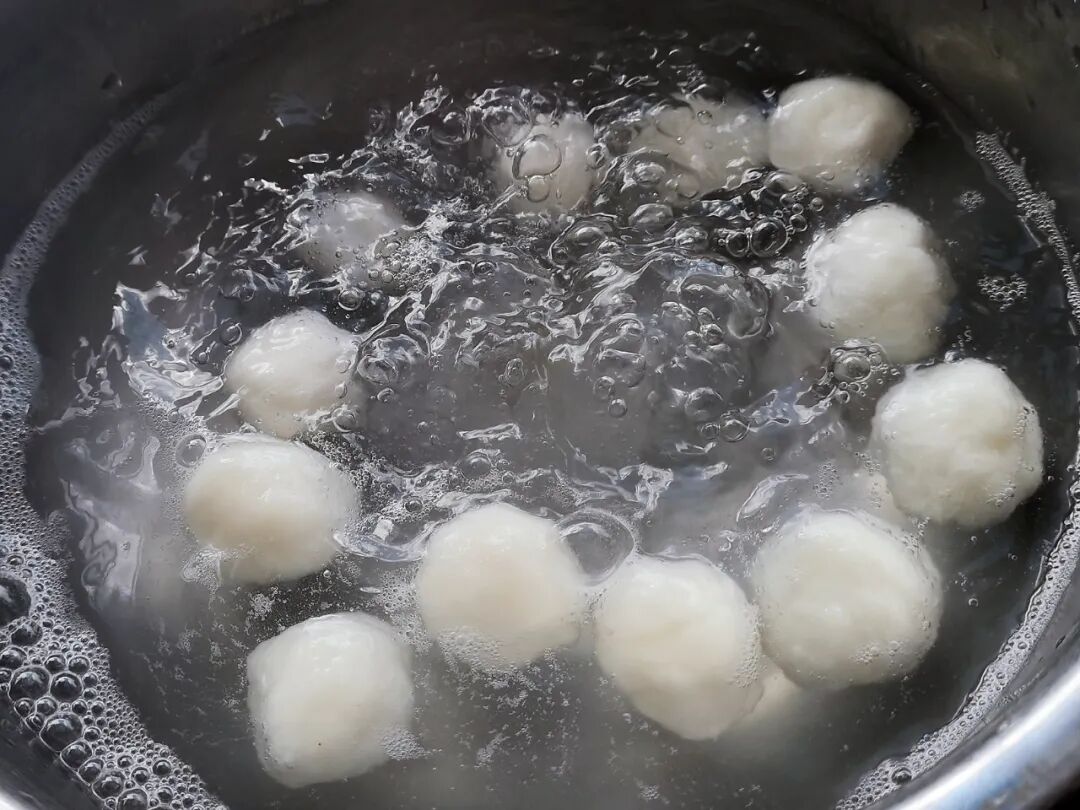 煮好的汤圆白白胖胖的