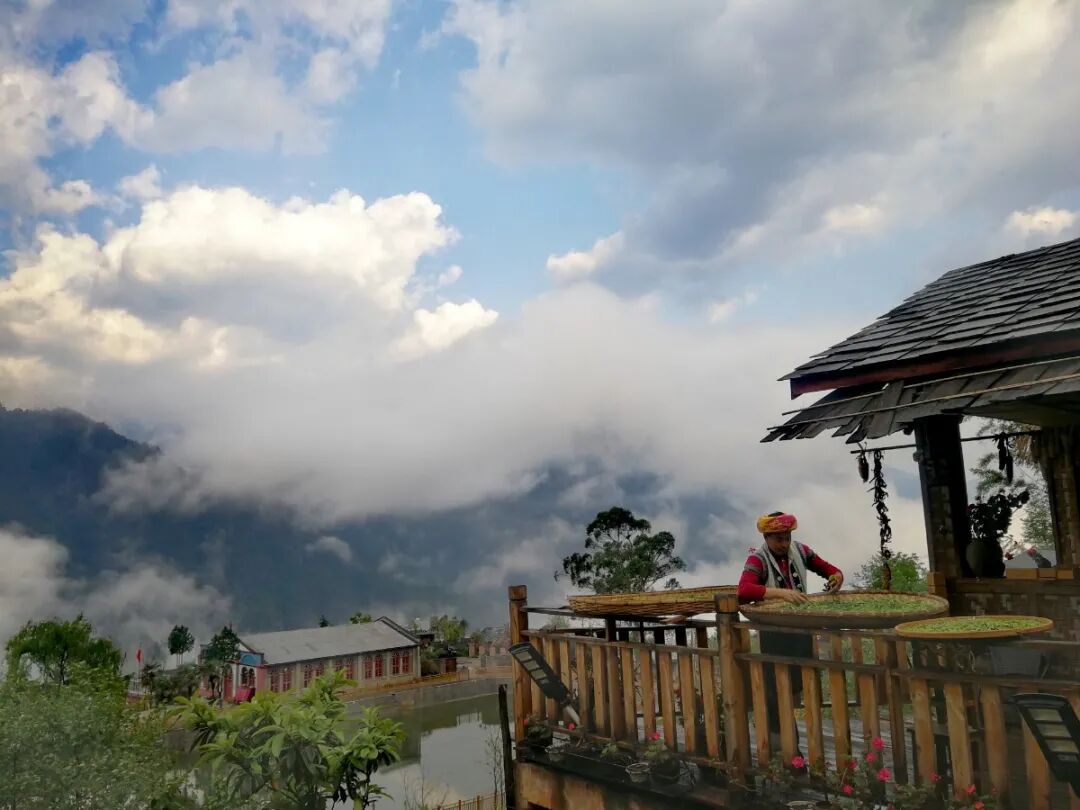 背靠山坡,走廊环绕,老姆登150客栈木片瓦和竹篱笆墙搭建起一个如世外桃源般的梦,屋檐下吊着金黄的玉米棒子和腌肉。