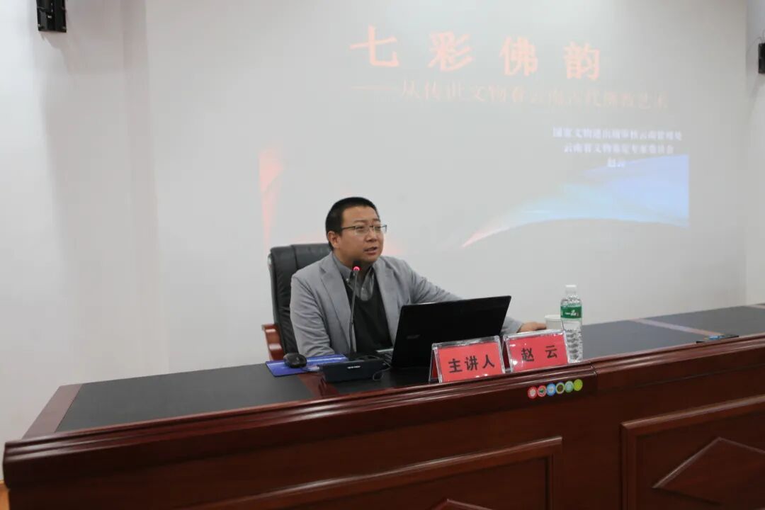 云南省文物鉴定专家委员会秘书处主任赵云以《七彩佛韵——从传世文物看云南古代佛教艺术》为主题,从东汉崖墓的重大发现、南诏佛教艺术的兴起、大理国君权再次神圣化、元明时期云南的汉传佛像艺术、近代云南的南传上座部佛教等方面进行了详细的介绍,通过大量的文物图片,使学员们对云南古代的佛教艺术有了更深刻的认识,感受到了云南古代佛教文化的独特魅力。