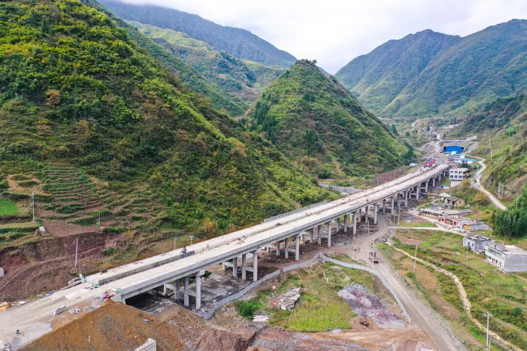 11月4日,宜(宾)至昭(通)高速二期小草坝连接线LK1+240大桥左幅T梁架设完成,标志着LK1+240大桥已双幅架通。