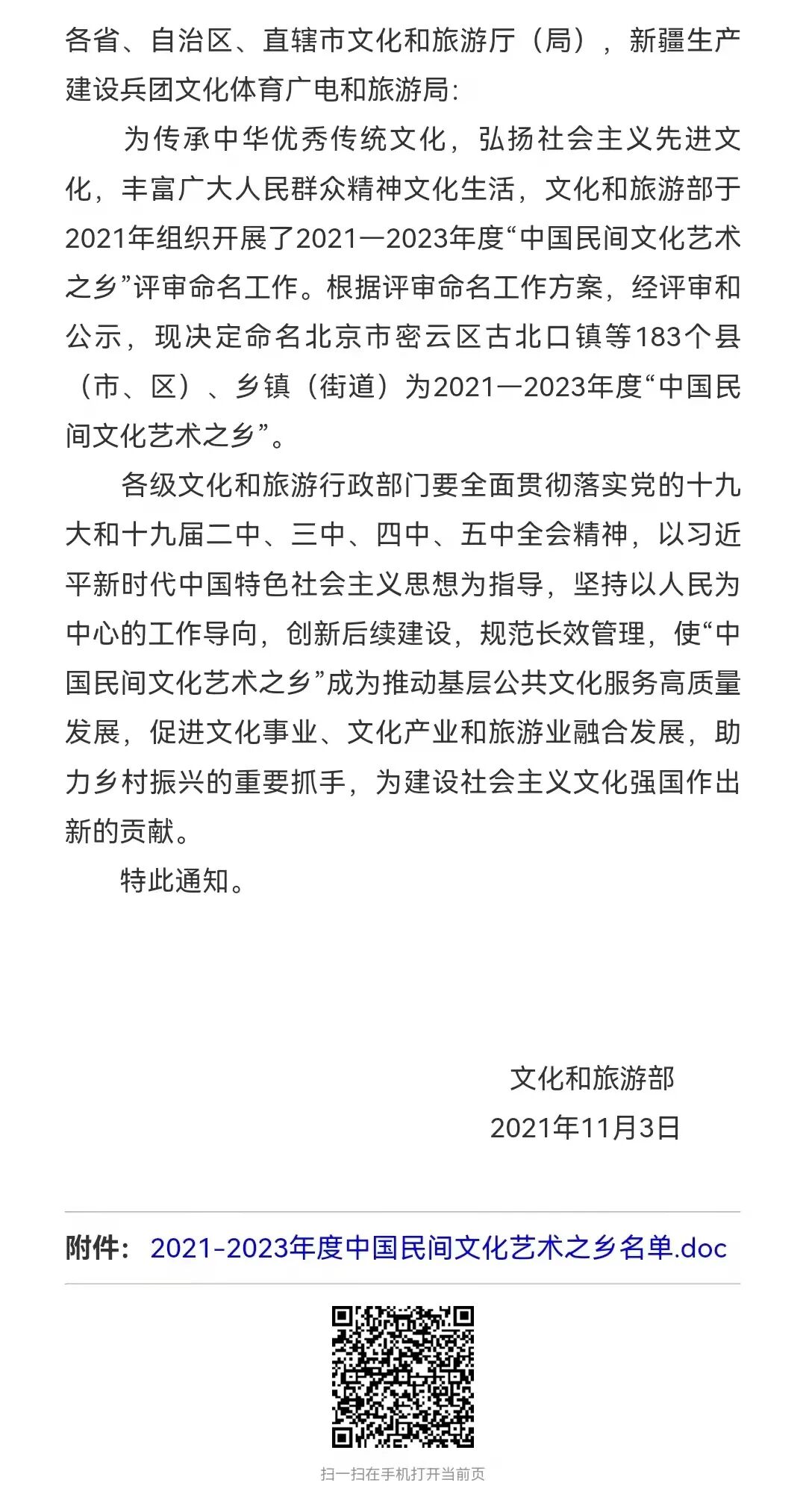 近日,文化和旅游部发布通知,经评审和公示,决定命名183个县(市、区)、乡镇(街道)为2021—2023年度“中国民间文化艺术之乡”。其中,临沧镇康县(阿数瑟歌舞)上榜。