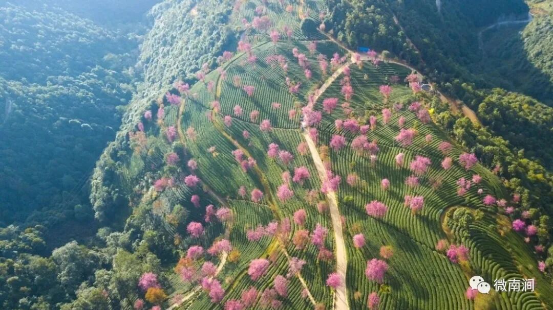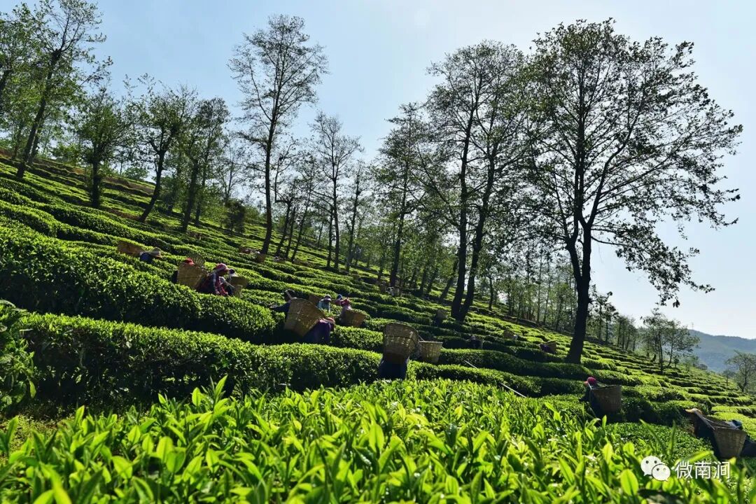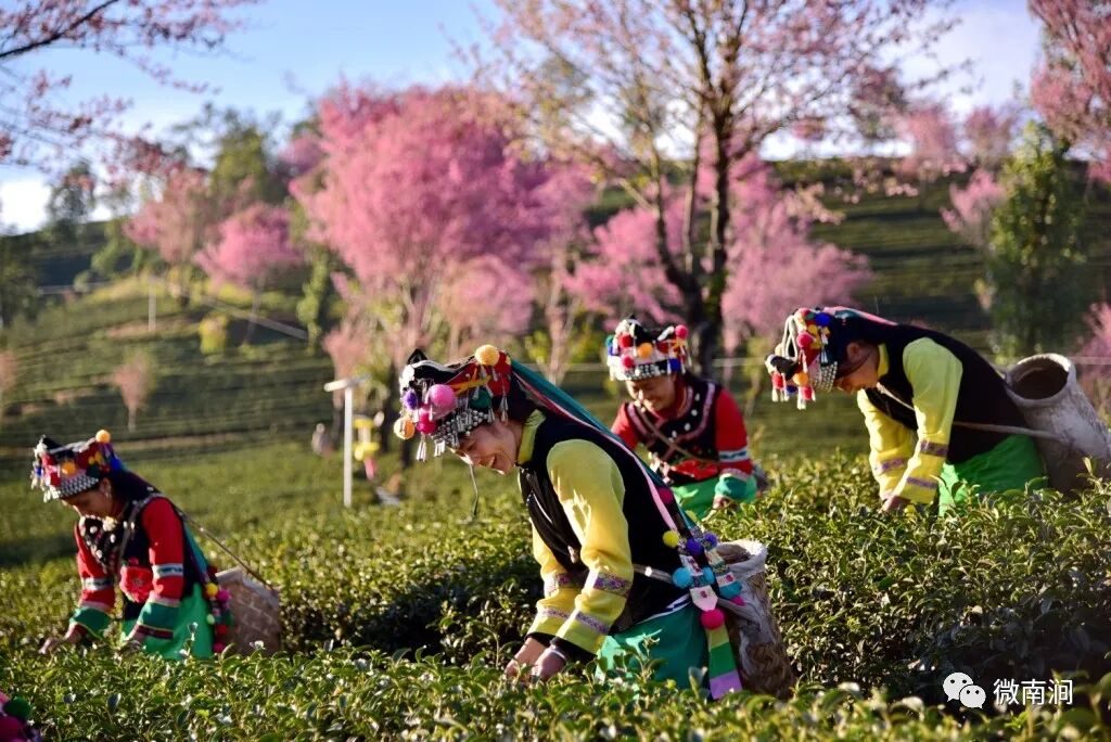 “要来要来快快来,茶正发芽花正开,来到茶山茶正发,来到花山花正开,采得好茶做成茶,妹做好茶郎来喝……”阵阵悠扬的彝族山歌声和欢笑声在山谷中回荡,没错,这就是远近闻名的樱花谷,顺声望去,一群群来自附近的彝家妇女正在南涧无量山樱花谷的千亩茶园中采摘茶叶。