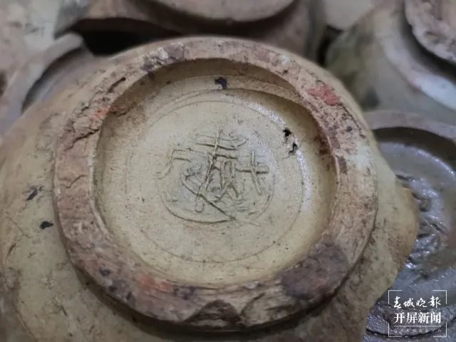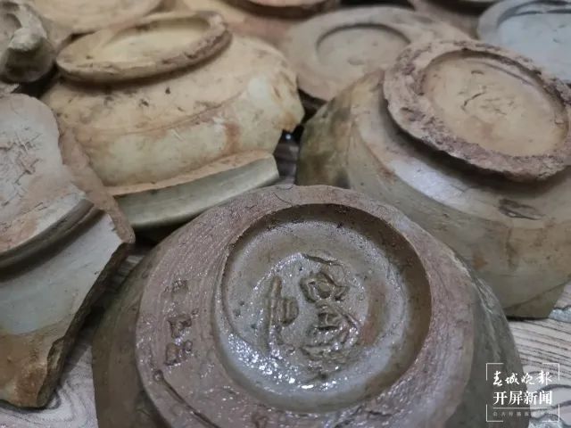 事实上,这些碎碗渣还是很有意思,与众不同的地方很多,仔细观察会发现有些碎碗渣碗底圈足上有些凸起的神秘文字符号,引人研究。
