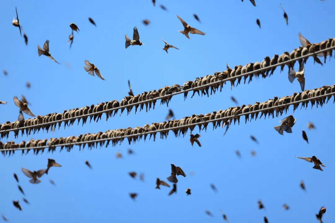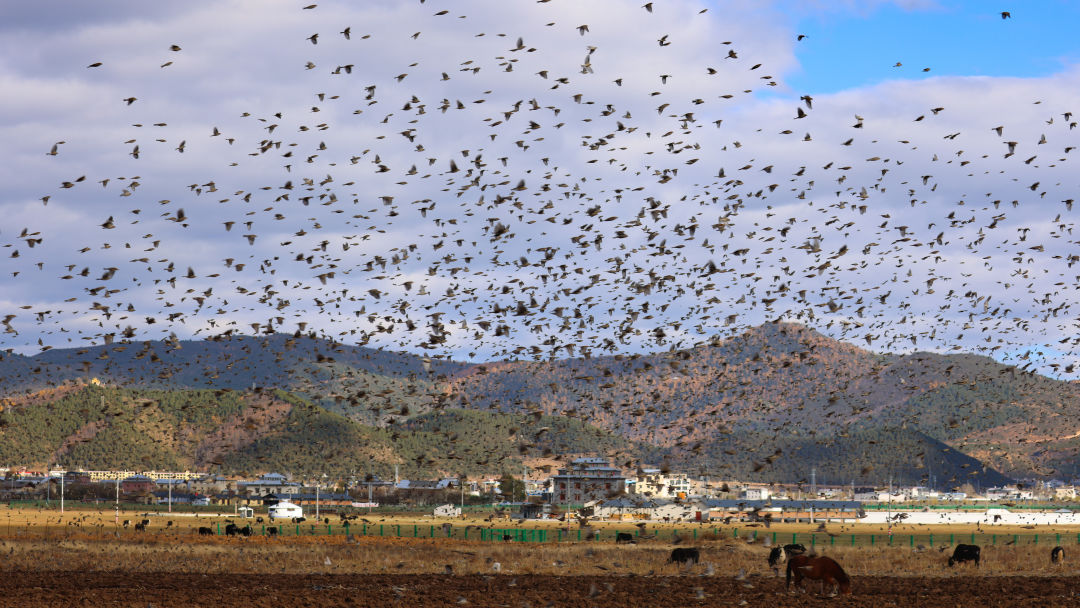 据介绍,在纳帕海湿地集群的林岭雀约有5万只左右。林岭雀属燕雀科岭雀属鸟类,羽毛带浅色纵纹,主要生活在海拔较高的山坡、草地、高山草原和树木稀疏的石砾堆处,常在地上觅食,以各种高山植物种子为食。