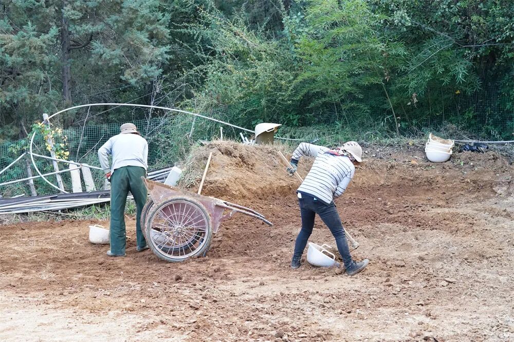 这几天,在两个观景台的施工现场,工人们有序地割草、填土、种花,“振兴曲”已经谱写在土地上。