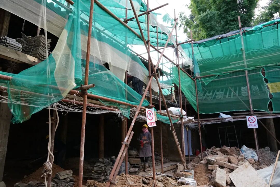 凤阳邑村茶马古道主题图书馆的施工现场