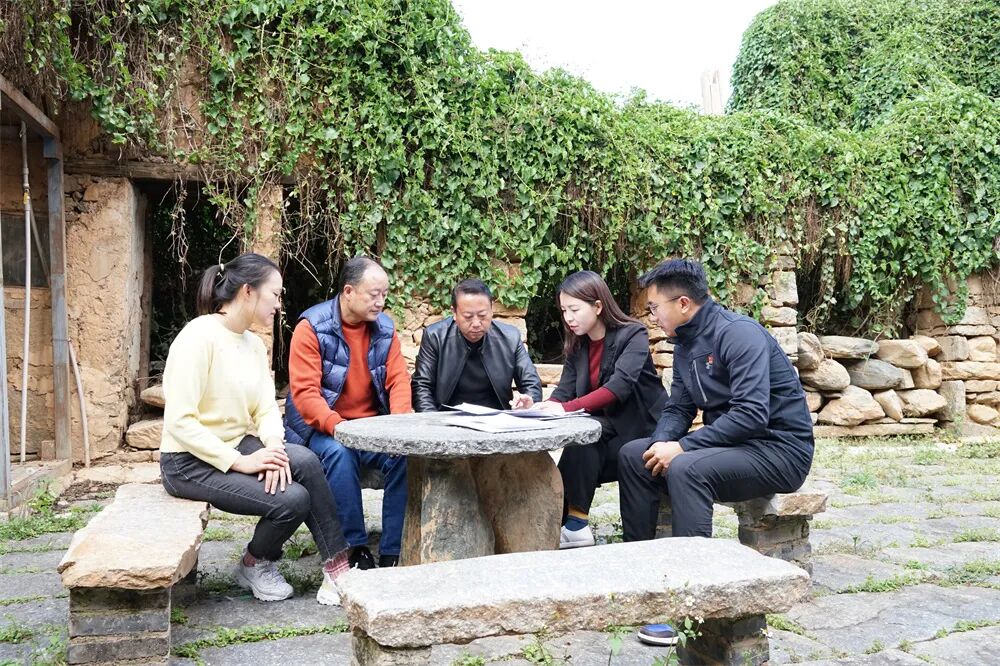 11月中旬,初冬的暖阳跟随着乡村振兴驻村工作队的工作步伐移动,晌午时分,院子东墙上的爬山虎在阳光的照射下绿得油亮;院子里,驻村工作队和村组干部围坐在石桌旁,讨论方案实施细节。