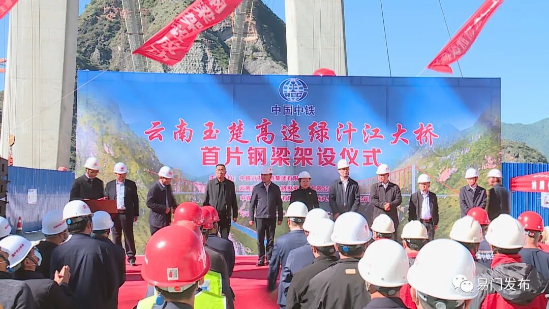 11月20日上午,由中铁开投、中铁大桥局承建的玉楚高速绿汁江特大桥首片钢箱梁架设成功。大桥建设完成后,将创下三项世界纪录,成为世界首座单塔单跨钢箱梁悬索桥。