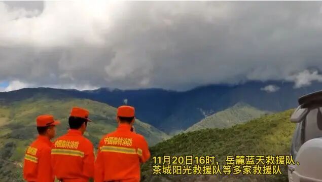 记者从云南省森林消防总队普洱支队获悉,11月20日下午,岳麓蓝天救援队、茶城阳光救援队等多支救援队,增援配合云南省森林消防总队普洱支队,继续开展中国地质调查局昆明自然资源综合调查中心4名队员的搜救工作。