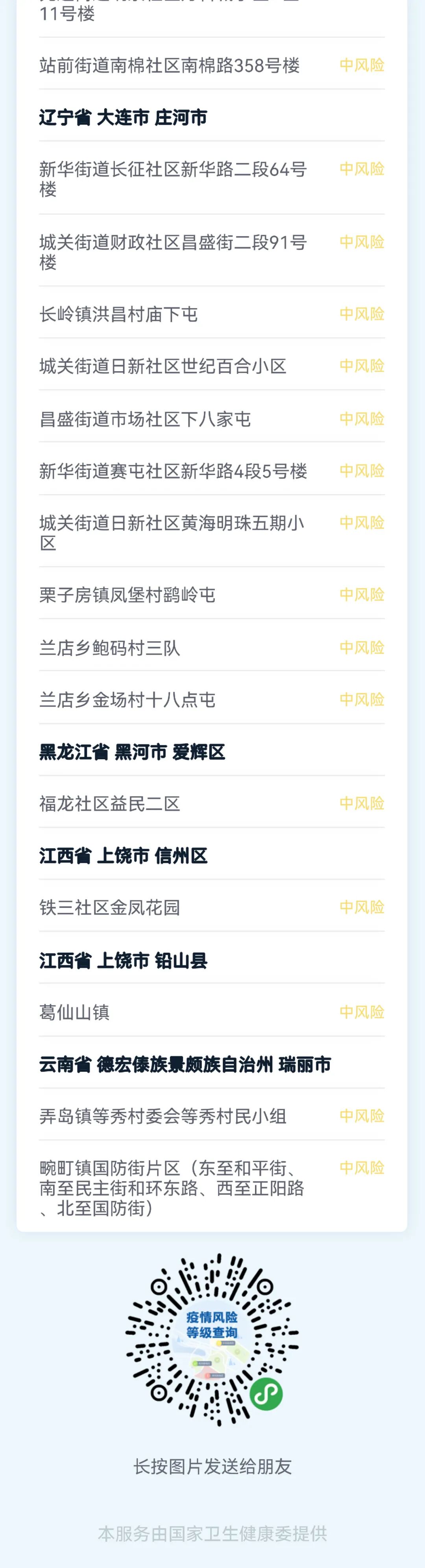黑河市爱辉区1个中风险地区调整为低风险等级