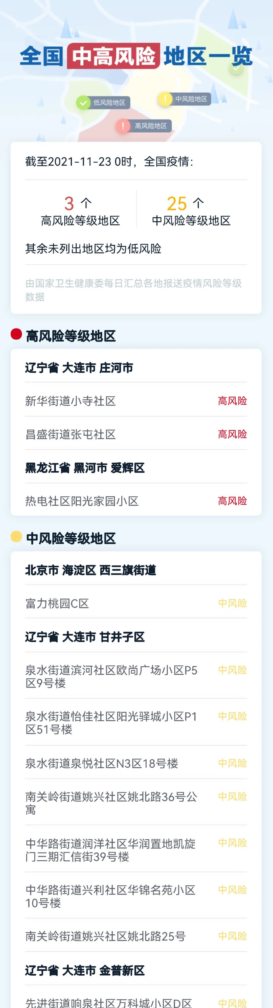 【11月23日】最新!全国高风险地区3个,中风险地区25个