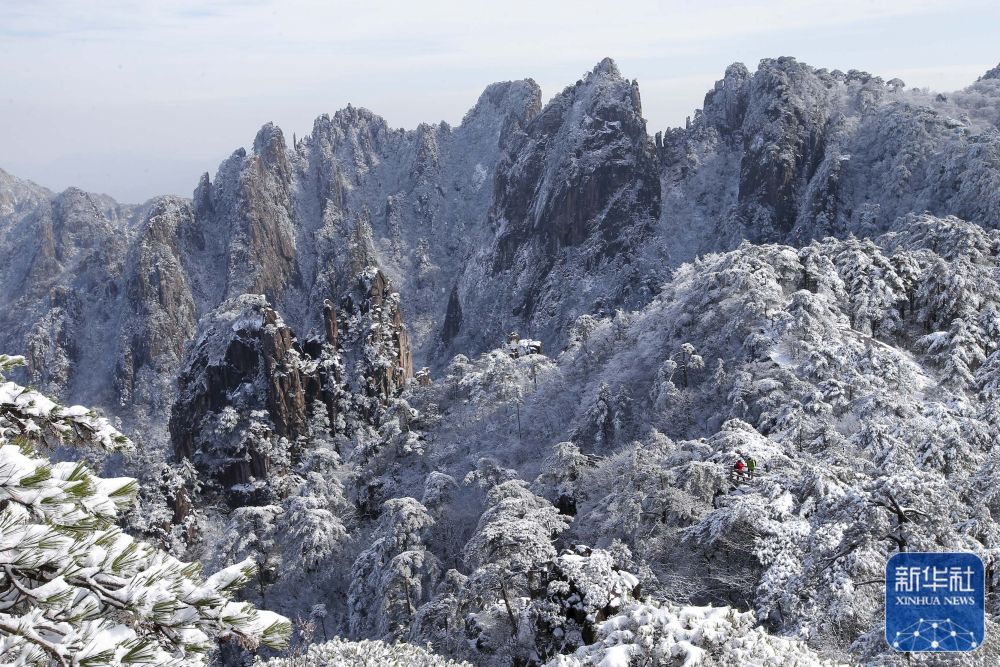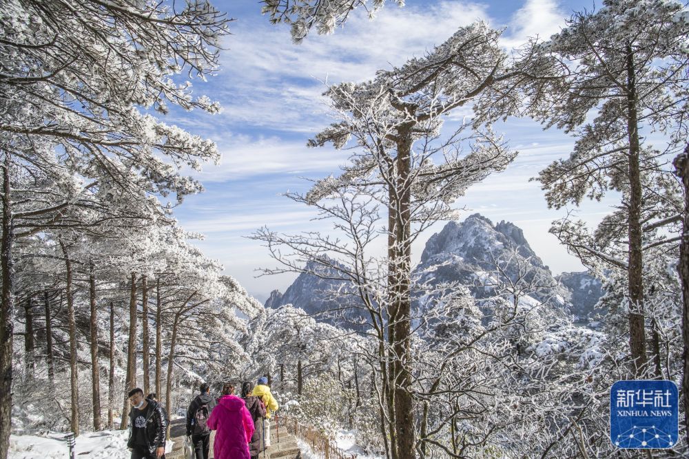 11月22日是“小雪”节气,安徽省黄山风景区雪后初霁,满山银装素裹,在冬日暖阳照耀下,晶莹剔透,宛如仙境。