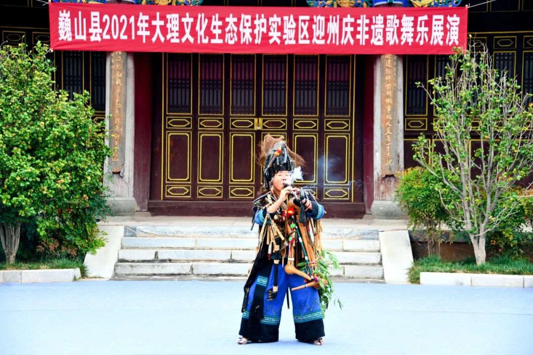 此次活动由巍山县文化和旅游局、大理州非物质文化遗产保护中心主办,巍山县文化馆承办,以线下展演、线上直播的形式,全面展现巍山县歌舞乐类非遗代表性传承人的才艺,有国家级、省级、州级、县级30多位传承人登台献艺,集中展示巍山县国家级非遗项目“彝族打歌”、州级非遗项目“巍山彝族山歌”,县级非遗项目“薅荞调”等非遗项目的保护成果。