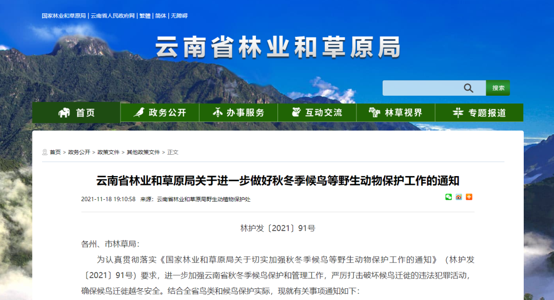 近日,云南省林业和草原局印发了《关于进一步做好秋冬季候鸟等野生动物保护工作的通知》,科学引导和鼓励支持各类文明规范的观鸟和鸟类拍摄活动,严禁“棚拍”“绑架诱拍”“钓鱼式诱拍”“巢拍”未经科学评估的投食,擅自进入自然保护区观鸟和拍鸟等6种不文明行为(来源:云南省林业和草原局、云南发布)