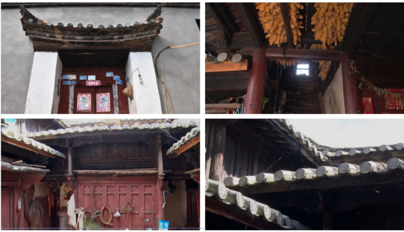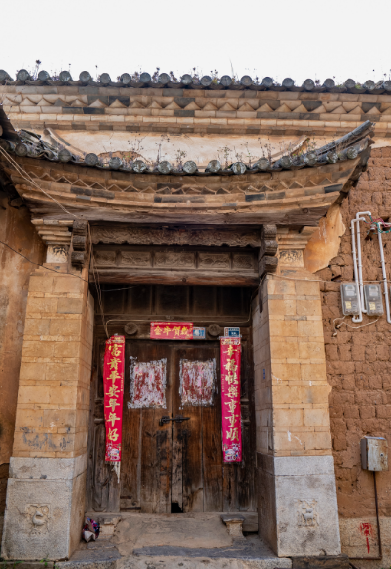部分保存较为完整的民居,多为“三间四耳一倒座”的土木结构房屋,是滇中“一颗印”建筑典范。正房和耳房多为二层楼房,倒座多数为平房,少数为楼房。正房较高,耳房低矮,中间则为天井。